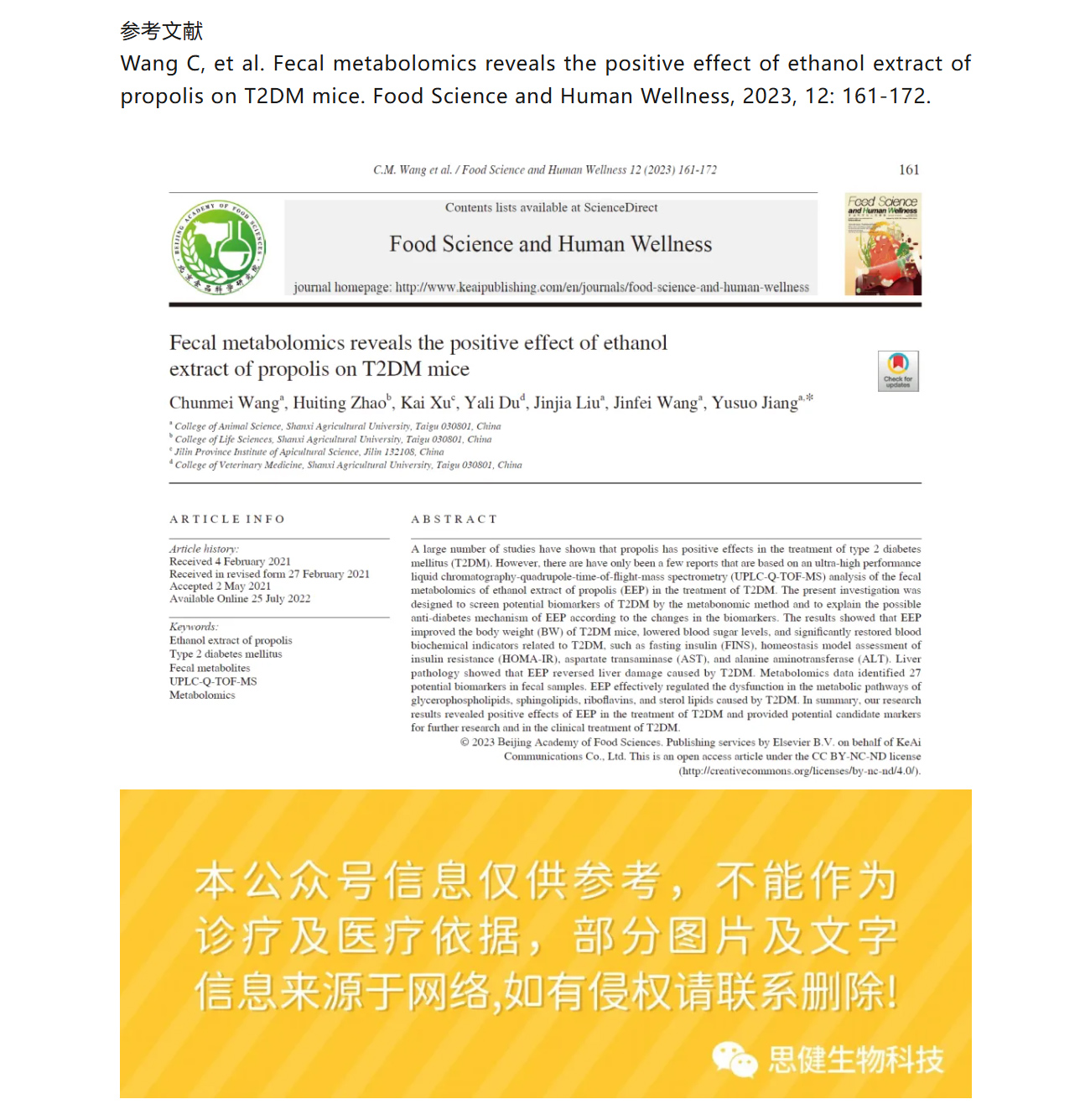 【科研速遞】蜂膠乙醇提取物如何“修復(fù)”糖尿病?糞便代謝組學(xué)揭開關(guān)鍵機(jī)制!
