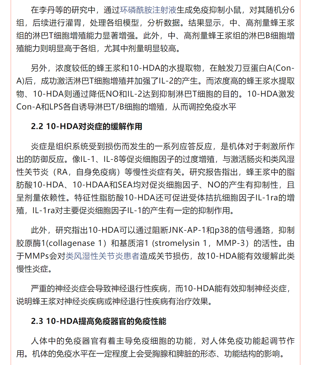 蜂王漿中10-HDA的免疫調(diào)節(jié)作用研究進展